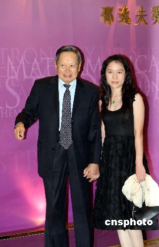 資料圖:2007年邵逸夫獎頒獎禮9月11日晚在香港會議展覽中心舉行。圖為楊振寧與妻子當晚出席活動。 中新社發(fā) 王麗南 攝