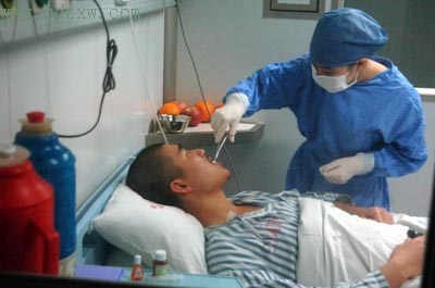 無菌室內(nèi),護(hù)士正在給小俞做護(hù)理