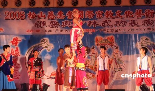 記者十七日下午在臺北市重要的宗教場所松山慈惠堂的大禮堂看到,數千市民將禮堂擠得水泄不通。堂主郭葉子介紹,從十六日起,云南藝術團在松山慈惠堂一連五天義演,每天下午和晚上各演一場。