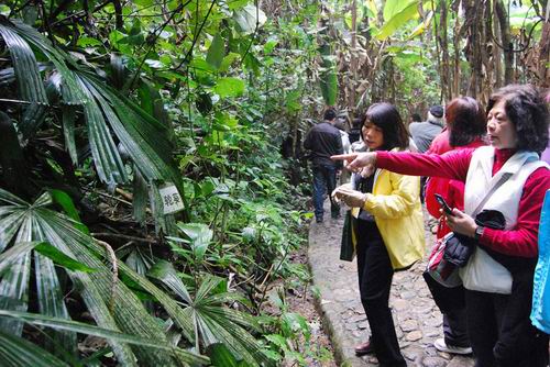2月29日,與會代表在觀賞峽谷珍稀植物——軸輪葵
