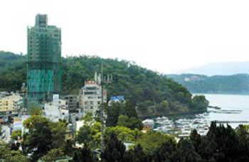 看好大陸觀光客商機(jī),打著房?jī)r(jià)一晚一萬(wàn)六千元起跳、號(hào)稱住宿等級(jí)比涵碧樓更高級(jí)的日月潭日月行館,去年才取得南投縣政府的BOT特許經(jīng)營(yíng)權(quán),原本預(yù)估要兩年才能完工,現(xiàn)在則是日夜趕工,計(jì)劃提前半年完工營(yíng)運(yùn)。轟轟的機(jī)具聲,讓住在旁邊的“觀光局”日月潭風(fēng)景管理處長(zhǎng)曾國(guó)基都抱怨說(shuō):“半夜兩點(diǎn)都會(huì)被嚇醒。”