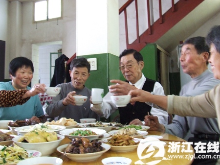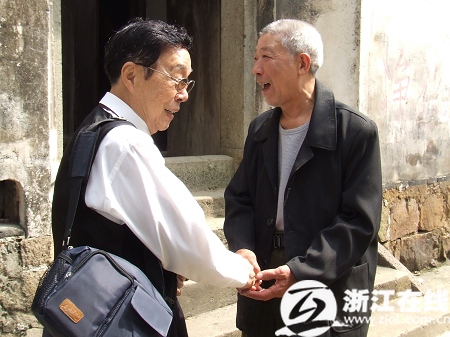 浙江在線杭州4月7日訊(見習記者 童俊) “老大哥,回來啦,身體怎么樣啊?”“好、好,你又上山啦,上墳了沒有?”剛走進鮑塢村的村口,徐憶中老人迎面碰上了從田里干完活的老漢徐國棟,兩人拉起一陣家常。徐老笑著說:“我離開的時候,他還穿著開襠褲呢,哈哈哈!”已經(jīng)84歲高齡的他,一身西裝打扮,走起路來虎虎生風,走山路的時候執(zhí)意不要侄女攙扶:“你還是看好自己的腳下吧!”侄女徐妙華望著二叔已經(jīng)走遠的身影,無奈地笑了笑。