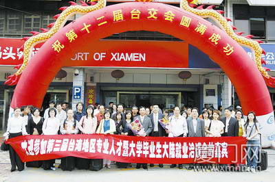 作為臺交會的重要配套活動,由市人才中心與臺灣汎亞人力資源管理公司共同舉辦的“臺灣地區專業人才暨大學畢業生大陸就業洽談會”已經成功舉辦兩屆。蔡宗志說:“這個洽談會為兩岸企業構建了一個多元、開放的平臺,雖然現在仍處于試探的初期,但必將有力地促進兩岸人才的交流,達到優勢互補,共同進步的目的。”