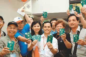 臺當局昨天上午通過擴大“小三通”案,昨天下午2時起實施,80位臺灣民眾拔得頭籌,興奮地拿著證件通關赴大陸。 臺灣《聯合報》圖