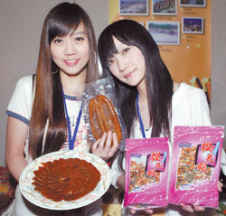 “2008臺灣旅游金賞獎”25日舉行頒獎典禮,屏東縣的萬巒豬腳、頂級黑珍珠、東港三寶(黑鮪魚、油魚子、櫻花蝦)獲得必買名產的獎項。圖為油魚子與櫻花蝦。臺灣《中國時報》陳麒全攝