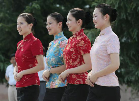 隨著兩岸直航的日益臨近,期待已久的空姐服裝7月1日下午在東航江蘇公司出爐。