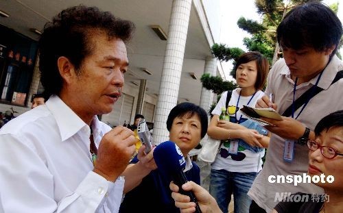 八月二日九時(shí)三十五分許,臺輪“慶鴻168號”獲救四名臺灣船員及其船員親屬乘坐“安麒”號客輪徐徐駛離福州馬尾客運(yùn)碼頭,經(jīng)“兩馬”航線赴馬祖再中轉(zhuǎn)返回臺灣基隆。圖為獲救臺輪“慶鴻168號”船員李坤財(cái)在福州馬尾客運(yùn)碼頭接受媒體記者采訪時(shí)稱:這次經(jīng)歷讓自己終生難忘,感謝大陸同胞的全力營救。 中新社發(fā) 劉可耕 攝
