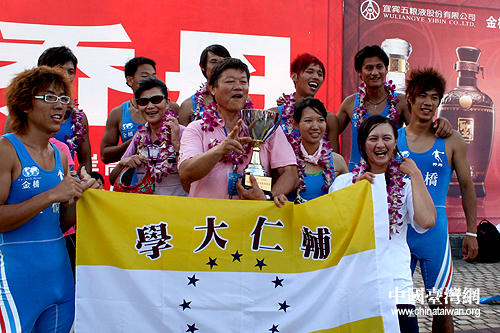 值得一提的是臺(tái)灣輔仁大學(xué)隊(duì),他們?nèi)ツ晔状螀⒓哟隧?xiàng)賽事,當(dāng)時(shí)賽艇隊(duì)教練謝茂松在接受記者采訪時(shí),除了謙虛地表示他們是來(lái)學(xué)習(xí)之外,似乎也暗示如果來(lái)年參賽,則必將是奔著好名次而來(lái)。結(jié)果果然如此,去年他們?cè)谠撡愂轮幸?分52秒73獲得第四名,今年卻一舉獲得了第二名,看來(lái)謝茂松對(duì)本隊(duì)的實(shí)力還是相當(dāng)有把握的。