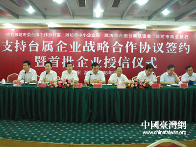 山東濰坊市舉行了支持臺資企業戰略合作協議簽約暨首批企業授信發放儀式