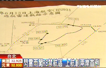 中新網(wǎng)6月16日電 據(jù)臺灣TVBS報道,兩岸直航以來發(fā)生第一次霸機事件,臺當局民航部門拿出天氣惡劣的數(shù)據(jù)替FM801班機背書,不過但同一份數(shù)據(jù)卻掀開一個不能說的秘密,該班機“抄快捷方式”返航上海,回程穿越敏感的“R8禁航區(qū)”,成為兩岸直航客機飛越軍事空管區(qū)首例。