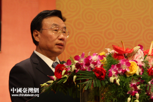 “第十五屆魯臺經貿洽談會暨第六屆臺商大會”今天上午在山東濰坊隆重開幕,圖為國臺辦主任助理、海協會副會長李亞飛在開幕式上致辭。(中國臺灣網 張弛 攝)