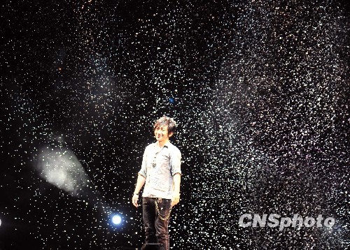 9月25日晚,劉謙亞洲魔術(shù)巡演福州站上演了驚險(xiǎn)的劍口逃生、浪漫的雪花共舞、神奇的牌術(shù)手法等。演出摒棄了傳統(tǒng)魔術(shù)的沉悶呆板千篇一律,時(shí)而浪漫溫馨時(shí)而調(diào)皮搞怪,觀(guān)眾的笑聲、掌聲經(jīng)久不斷。圖為劉謙訴說(shuō)著非洲女孩的夢(mèng)想,此時(shí)現(xiàn)場(chǎng)隨著劉謙神奇的手揮動(dòng)中變出浪漫的雪花,全場(chǎng)一片驚呼。 中新社發(fā) 張麗君 攝