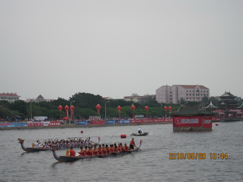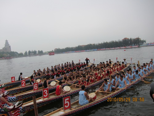 海峽之聲網(wǎng)廈門站5月29日訊(記者 佳祺) 今天的集美龍舟池,彩旗飄飄,百舸爭渡,人聲鼎沸。上午9點(diǎn)整,由國家體育總局龍舟協(xié)會和廈門市集美區(qū)人民政府共同主辦的2010'嘉庚杯海峽兩岸龍舟賽如期在這里激情開賽,來自海峽兩岸及新加坡、香港、澳門等國家和地區(qū)的76支隊(duì)伍2500多名運(yùn)動員展開了激烈角逐。