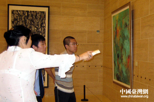 畫展現場參觀者對展出作品展開熱烈討論。(中國臺灣網 劉瑩 攝)