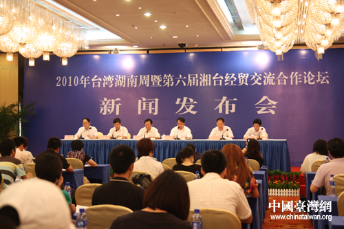 7月16日下午,湖南省政府舉行新聞發布會,湖南省副省長陳肇雄在會上發布消息表示,“2010年臺灣湖南周”暨第六屆湘臺經貿交流合作論壇將于8月2日至9日在臺灣舉行,湖南省委副書記梅克保將率領約300人的代表團赴臺進行交流活動。(中國臺灣網 楊麗 攝)