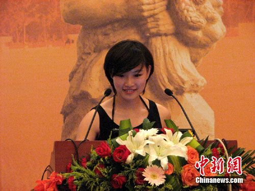 第二屆海峽兩岸炎帝神農(nóng)文化論壇今天在湖北隨州市舉行,年僅二十二歲、來自臺灣的美女學者宋佳穎現(xiàn)身論壇,發(fā)表《臺灣民俗藝陣創(chuàng)新發(fā)展之研究》演講,成為全場的亮點。