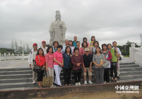 臺灣旅游團(tuán)在比干廟景區(qū)合影留戀 (圖片來源:新鄉(xiāng)市臺辦)