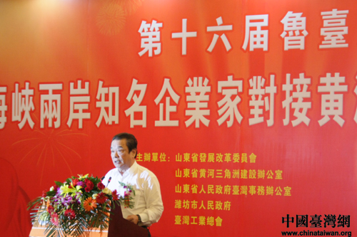 中國臺灣網9月1日濰坊消息 9月1日下午,海峽兩岸知名企業家對接黃河三角洲戰略合作推介會在濰坊濱海經濟技術開發區舉行。本次推介會旨在全面宣傳推介黃河三角洲開發戰略,重點推介黃河三角洲地區特別是濱海經濟技術開發區的投資優勢和重點招商項目,組織兩岸企業家懇談開發政策、對接開發商機,為實現互惠雙贏奠定良好基礎。