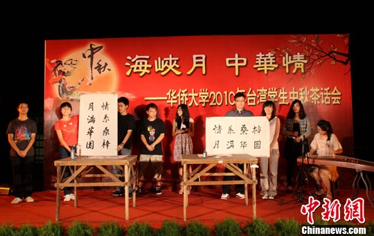 華僑大學副校長關一凡到場與同學們共同聯歡,他表示,“華大現有臺灣學生108名,其中,今年的臺灣新生有36名”。華大臺灣學生中秋茶話會至今已經舉辦了十幾屆,不僅成為了弘揚校園文化的平臺,也有利于兩岸學子、海內外學生更好的交流。 (孫虹 雷偉軍)