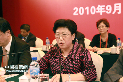 9月24日,海峽兩岸關(guān)系協(xié)會會長陳云林為與會代表作了兩岸關(guān)系發(fā)展的專題報告。(中國臺灣網(wǎng) 楊麗 攝)