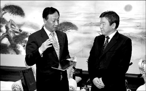 “富士康進駐河南,可以說是天時地利人和,具有標志性意義。”30日河南省委書記、省人大常委會主任盧展工在索菲特國際飯店會見富士康科技集團總裁郭臺銘一行時由衷地說。