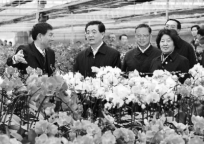 2010年2月12日,中共中央總書記胡錦濤考察漳浦臺灣農民創業園,了解臺灣農民生產經營情況。 記者 鄭杰 攝