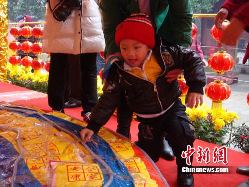 作為閩臺兩地非常古老、極具閩南特色的傳統民俗文化活動,乞龜寓意著一年的平安、幸福。由泉州、臺灣澎湖兩地聯手制作重約3.5萬斤的大“米龜”被前來參加元宵乞平安龜祈福活動的信眾圍個水泄不通,大家都想早點摸到大米龜,以祈得一年的好運道。