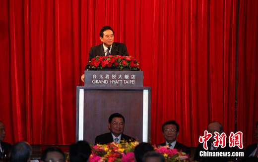 2月23日晚間,臺(tái)灣海基會(huì)在臺(tái)北君悅大飯店設(shè)宴歡迎大陸海協(xié)會(huì)會(huì)長陳云林一行,圖為陳云林在晚宴上致辭。中新社記者 符永康 攝