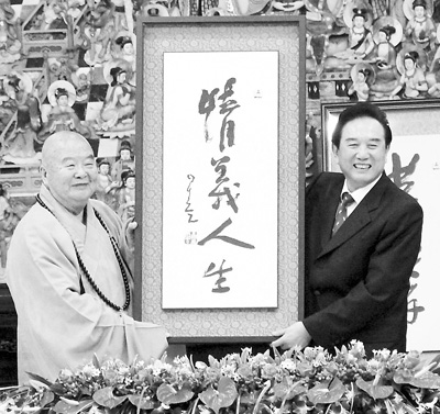 預定到訪時間是下午4點半,記者提前來到高雄市郊的佛光山。好大的寺院,清凈祥和。在院里,本報記者和中新社記者巧遇星云大師,他坐著輪椅,巡視接待工作的細節。聽說大陸記者來采訪,他連聲說歡迎歡迎,并告訴我們:行程很緊,只有20多分鐘,你們拍照要抓緊哦!