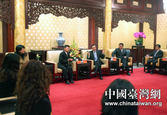 3月22日下午,中共中央臺(tái)辦主任王毅在北京釣魚(yú)臺(tái)賓館會(huì)見(jiàn)來(lái)訪的臺(tái)灣前高雄縣長(zhǎng)楊秋興一行。 (中國(guó)臺(tái)灣網(wǎng) 田云鵬 攝)