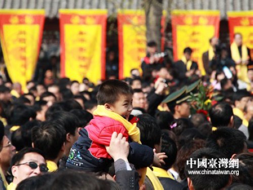 辛卯年黃帝故里拜祖大典開始前。扶老攜幼,觀者云集。(中國臺灣網 馬迪 攝)