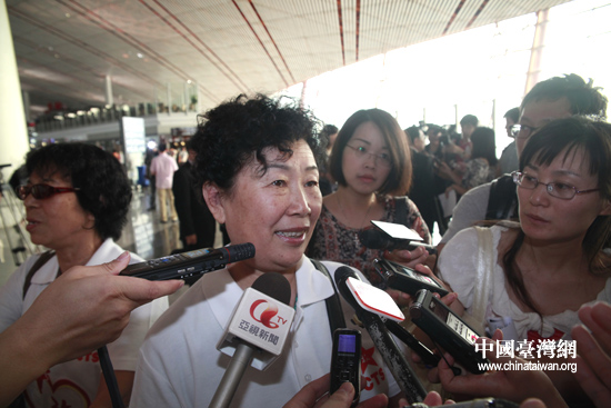 81歲高齡的蕭玉鳳老人在家人的陪伴下赴臺旅行(中國臺灣網 于斯文 攝)