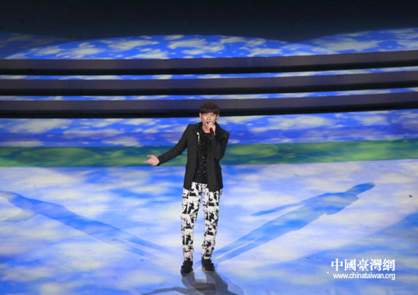 周杰倫演唱了歌曲《青花瓷》。周杰倫一出場,既引來現場一片尖叫聲,現場氣氛十分熱烈,所有觀眾都跟著節奏打拍子。一曲完畢,大家仍意猶未盡,直呼“要求再來一曲”。可惜時間有限,未能成愿。(中國臺灣網 普燕 攝)