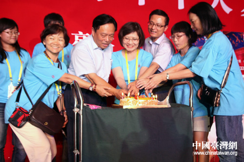 中國臺灣網(wǎng)7月14日北京消息 7月13日晚,全國臺聯(lián)臺胞青年千人夏令營營員們赴北京大學(xué)交流,臺胞青年與北大學(xué)子攜手舉行了豐富多彩的聯(lián)歡活動。全國臺聯(lián)會長梁國揚出席聯(lián)歡活動,并上臺與13日當天過生日的臺胞青年共同慶祝。