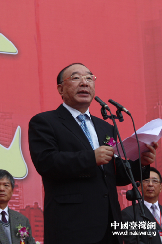 第三屆“重慶·臺灣周”暨臺灣名品博覽會17日上午在重慶國際會展中心開幕,重慶市市長黃奇帆在開幕式上致辭。(中國臺灣網 楊麗 攝)