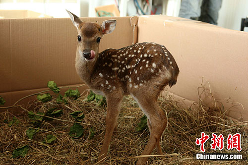 臺灣贈送大陸梅花鹿所生鹿寶寶斷奶 身體良好