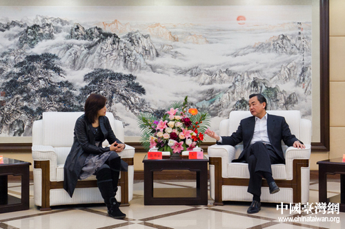 中共中央臺辦、國務院臺辦主任王毅16日在北京會見了多年堅持幫助涼山麻風村教育事業的臺胞張平宜女士。 (中國臺灣網發 鄧鴻偉 攝)