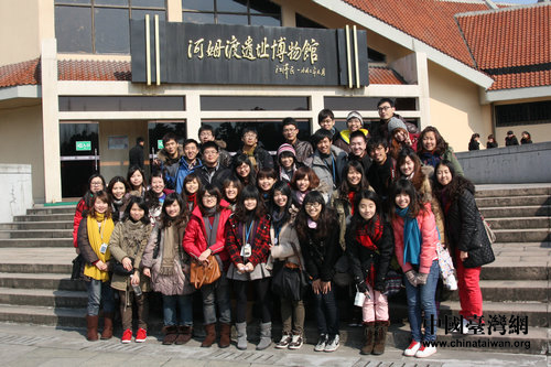 中國臺灣網2月4日杭州消息 由臺灣多所大學30余名青年學子與大陸大學生組成的“‘追尋歷史足跡’——城際高鐵之旅”團隊3日參觀了河姆渡遺址、杭州西湖及岳飛廟等文化景點。