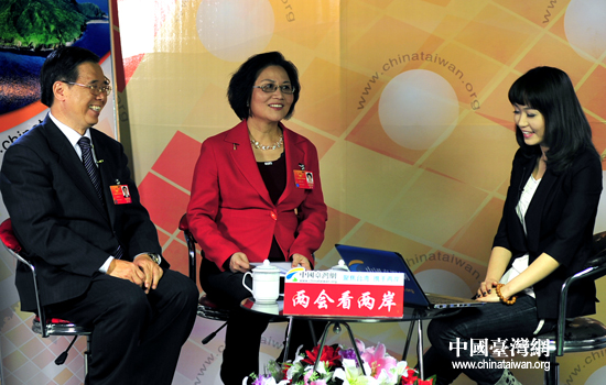 9日,十一屆全國人大臺籍代表陳蔚文(左)、陳云英(中)做客中國臺灣網,談履職感受。(中國臺灣網 田云鵬 攝)