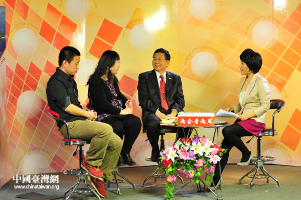 臺灣海峽兩岸觀光旅游協會(臺旅會)北京辦事處主任楊瑞宗、中央人民廣播電臺記者陳雅萍、個人游背包客汪振14日做客中國臺灣網兩會特別節目,暢談赴臺個人游(中國臺灣網 于斯文 攝)