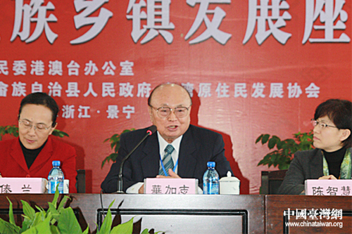 中國(guó)臺(tái)灣網(wǎng)3月25日景寧消息 24日下午,海峽兩岸民族鄉(xiāng)鎮(zhèn)發(fā)展座談會(huì)在畬鄉(xiāng)景寧召開(kāi),臺(tái)灣少數(shù)民族知名人士與浙江、福建部分民族鄉(xiāng)長(zhǎng)代表以“促進(jìn)兩岸交流、增進(jìn)民族感情,推動(dòng)兩岸少數(shù)民族經(jīng)濟(jì)社會(huì)共同繁榮發(fā)展”為主題,就畬族文化和臺(tái)灣少數(shù)民族文化狀況、民族文化發(fā)展方向以及民族經(jīng)濟(jì)發(fā)展等進(jìn)行了座談交流。