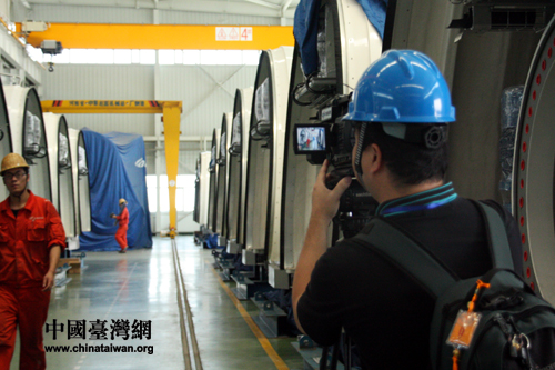 中國臺灣網(wǎng)5月31日酒泉消息 30日下午,兩岸媒體記者到酒泉新能源裝備制造業(yè)園區(qū)進行參觀,詳細地了解風(fēng)機、葉片、電池等生產(chǎn)情況。(記者 郜利敏)
