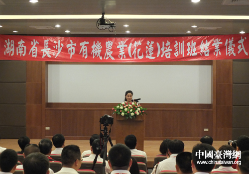 國臺辦投訴協調局副局長張世宏、湖南省政府秘書長戴道晉、湖南省臺辦主任馮波、長沙市委常委文樹勛、臺灣萬事達國際集團董事局主席李玉文等出席了長沙市有機農業培訓交流班結業儀式。(中國臺灣網湖南省臺辦通訊員 康衡)