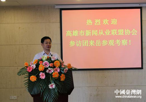 岳陽市委、市政府在南湖賓館舉行了隆重的歡迎儀式。嚴華主持歡迎儀式,徐新啟致辭并作了岳陽市情推介。參訪團團長顏榮忠先生就高雄市經濟社會發(fā)展、新聞從業(yè)聯盟協會與大陸各地的互動以及本次來湖南岳陽參訪的目的作了介紹。
