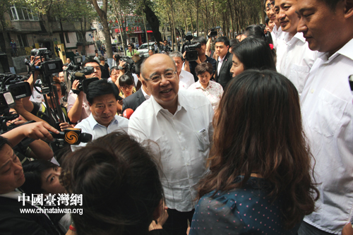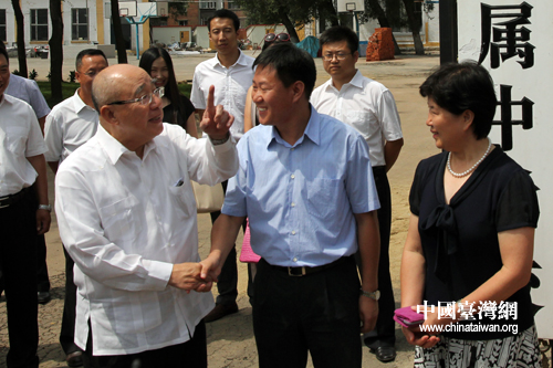 7月28日,國民黨榮譽主席吳伯雄來到哈爾濱,與哈工大附中校長會面。(中國臺灣網 馬迪 攝)