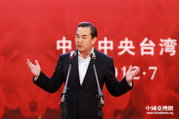 7月29日晚,中共中央臺灣工作辦公室為第八屆兩岸經(jīng)貿(mào)文化論壇舉行歡送宴會。圖為中共中央臺辦主任王毅在宴會上致辭。(中國臺灣網(wǎng) 于斯文 攝)