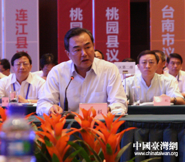8月19日,中共中央臺辦主任王毅在成都出席由兩岸基層民意代表共同參加的“雙百論壇”。(中國臺灣網 王怡然 攝)