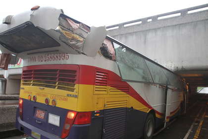 中國臺灣網8月24日消息  據臺灣媒體報道,一輛滿載33人廣州陸客游覽車,今下午行經臺灣嘉義市世賢路(四線道)時,誤闖限高2.4米的機車道,車頂撞上路橋損毀,造成28人受傷送醫。