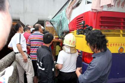 一載有廣州客游覽車在嘉義撞路橋 28人受傷(圖)