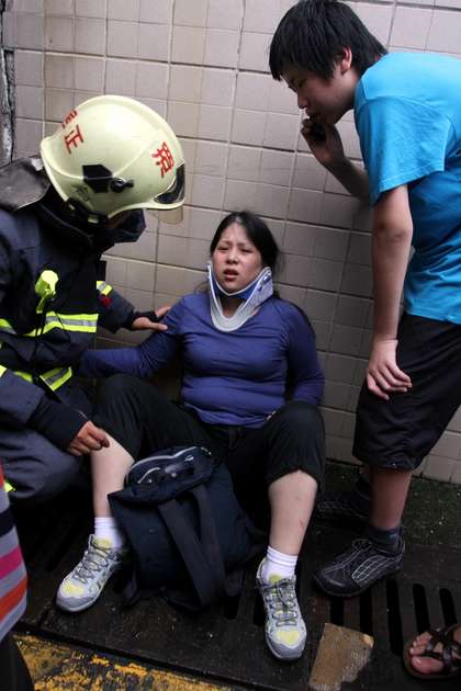 傷者憂慮丈夫和父親傷勢,兒子在一旁安撫。圖片來自臺媒